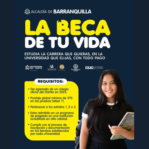 Los beneficios de la La Beca de tu Vida (convocatoria 2026, en Barranquilla) incluyen los siguientes: